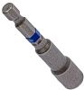 Хвостовик бит - E1/4", наиболее распространённый. 1/4" - это посадочный размер изделия, то есть его нерабочей стороны, которой оно крепится в патроне инструмента. E – один из двух основных (наряду с C) вариантов исполнения: на нём есть глубокая кольцевая выемка под шариковый фиксатор. Если в патроне отвёртки или шуруповерта не предусмотрена пружинная фиксация оснастки, то хвостовики обоих исполнений взаимозаменяемы.