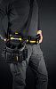 - Съемная универсальная клипса позволяет мгновенно зафиксировать сумку на строительном поясе без необходимости его снимать.