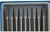 Инструменты используются для обработки круглых и квадратных отверстий, создания точных и гладких поверхностей, подгонки деталей, удаления заусенцев и притупления острых кромок. Набор состоит из шести разных типов надфилей. Трехгранный надфиль подойдет для обтачивания угловых частей. Полукруглые и разновыпуклые используются как для обработки отверстий и вытачивания углублений, так и для плоских поверхностей. Квадратная форма надфиля оптимальна для протачивания квадратных отверстий и прямоугольных прорезей. Круглый удобен для расширения мелких углублений. Плоский остроносый и плоский тупой нужны для сглаживания неровностей на деталях с гранями. Пазовый используется для пропиливания и обработки поверхностей малодоступных участков. Ромбический нужен для обработки всечек, стороны которых имеют определенный угол расхождения.