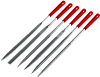 Инструменты используются для обработки круглых и квадратных отверстий, создания точных и гладких поверхностей, подгонки деталей, удаления заусенцев и притупления острых кромок. Набор состоит из шести разных типов надфилей. Трехгранный надфиль подойдет для обтачивания угловых частей. Полукруглый используется как для обработки отверстий и вытачивания углублений, так и для плоских поверхностей. Квадратная форма надфиля оптимальна для протачивания квадратных отверстий и прямоугольных прорезей. Круглый удобен для расширения мелких углублений. Плоский остроносый и плоский тупой нужны для сглаживания неровностей на деталях с гранями.