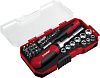 Это двухкомпонентная рукоятка-трещотка, имеющая трёхпозиционный реверсивный механизм: прямое вращение, обратное вращение и блокировка). Режимы меняются посредством вращения чёрного ребристого кольца. Рукоятка принимает адаптеры и биты с хвостовиком E1/4".