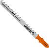 Внимание! При установке и снятии полотна отключите лобзик от электросети. Не рекомендуются для фигурной резки с малыми радиусами или для ламината без защиты кромки — крупный зуб может вызывать сколы.