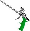 Пистолет предназначен для полупрофессионального применения в строительстве, монтаже окон и дверей, а также для ремонтных работ. Он совместим исключительно с баллонами пены, имеющими резьбовое соединение (тип «Евро»). Наличие регулятора подачи позволяет точно дозировать материал в зависимости от задачи — от тонкого шва до заполнения крупных полостей. Габариты (345х190х50 мм) и вес (230 г) обеспечивают удобный баланс и управляемость. После использования инструмент требует обязательной очистки специальным средством для предотвращения засорения каналов.