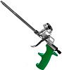 Ключевые рабочие элементы изготовлены из нержавеющей стали: ствол, шариковый и игольчатый клапаны. Это обеспечивает устойчивость к химическому воздействию компонентов пены, коррозии и гарантирует длительную службу при интенсивном использовании. Адаптер для соединения с баллоном и курок выполнены из металла. Рукоятка сделана из химически стойкого ударопрочного пластика, обеспечивает удобный захват. Инструмент оснащён регулировочным винтом для плавного изменения интенсивности потока пены. Для удобства хранения на корпусе предусмотрена петля, за которую инструмент можно подвешивать..