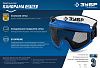 Закрытая конструкция позволяет без проблем использовать очки поверх обычных диоптрийных, что не требует приобретения специальной оптики с защитными линзами.